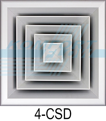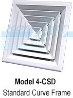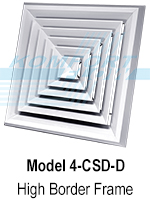 Model C-Series : Available in both square Model CSD and rectangular Model CRD shapes. - เป็นหัวจ่ายส่งลมเย็นแบบติดฝ้าเพดาน (Ceiling Diffuser) สามารถจ่ายลมได้ 1,2,3 และ 4 ทาง