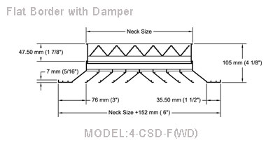 หน้ากากแอร์ รุ่น CSD-T แบบขอบเรียบมาตรฐาน คอมีขนาด 18 นิ้ว ( 450 มิลลิเมตร) ตามที่ปรากฏในรายละเอียดในส่วนด้านล่าง
