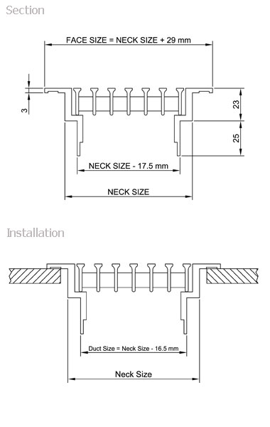 Extruded aluminum heavy duty pressed core construction, Recommended for Floor application (light foot traffic)